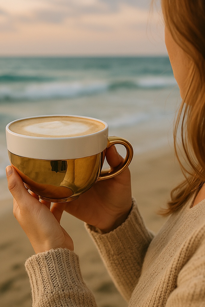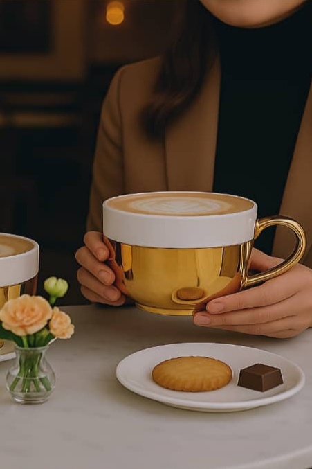 لاته خوری 300سی سی چینی دایان گالری مدل la 302 رنگ سفید طلایی